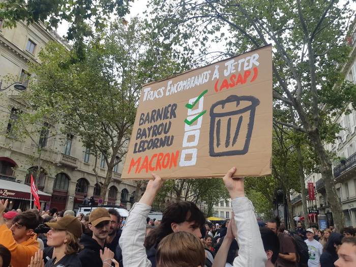 Mnozí aktivisté a aktivistky 10. září požadují další rozpuštění Národního shromáždění, případně Macronovu demisi — a tím pádem předčasné parlamentní i prezidentské volby. Po rozpuštění Národního shromáždění volá jak parlamentní krajní pravice, tak v parlamentní levici nejsilněji zastoupená strana Nepoddajná levice.