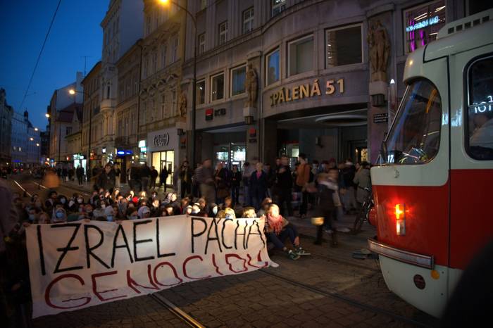V pátek 3. října krátce před sedmou večer zablokovalo asi stopadesát propalestinských aktivistek a aktivistů tramvajovou dopravu v pražské ulici Spálená. Padesát lidí dopravu blokovalo vsedě na silnici, dalších sto je podporovalo vestoje — a další v průběhu přicházeli. Blokáda trvala přibližně hodinu a půl. Policie zadržela sedmnáct lidí, v průběhu noci všechny propustila.