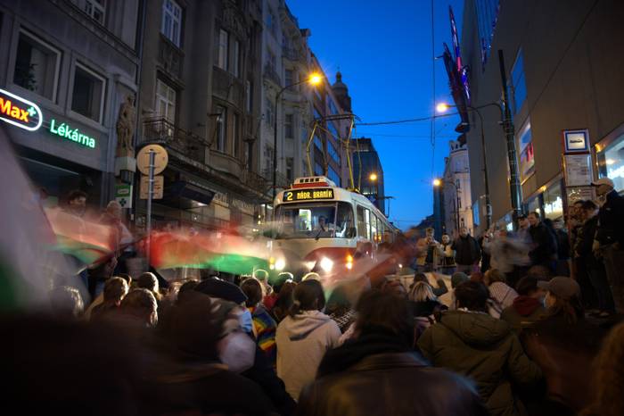 „Pusťte Šárku!“ Propalestinští aktivisté zablokovali dopravu v centru Prahy