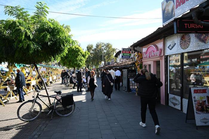 Za vyřezávanou dřevěnou fontánou na centrálním náměstí se vine řada žlutě natřených dřevěných stánků, v nichž místní prodávají med. Ulici lemují obchůdky s praženou kukuřicí, želatinovými sladkostmi, baklavou či oříšky. Pouliční prodavač balónků s motivy bytostí z animovaných pohádek chroupe pečené kaštany, jejichž vůně v ulicích ohlašuje brzký příchod zimy.