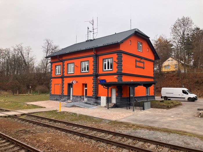 Zdá se docela logické, že takto popsanou firemní barevnost si zvolil i státní podnik Správa železnic, obhospodařující kromě kolejových cest také nádražní budovy. Třeba na jeho nedávno postavené provozní budově na Nových Sadech v Brně je tato volba poměrně trefná. Kombinace reflexní oranžové a šedé spolu s bílými okny a kontrastně modrými dveřmi výborně podtrhuje utilitární, a tedy účelný výraz soudobé pozdně modernistické budovy — působící robustně, přesto ve svém měřítku a kontextu přiměřeně. To se bohužel nedá říct o čerstvě zrekonstruované budově lokálního nádraží v Pacově, která zcela nevhodnou barevností vyvolala širokou veřejnou debatu.