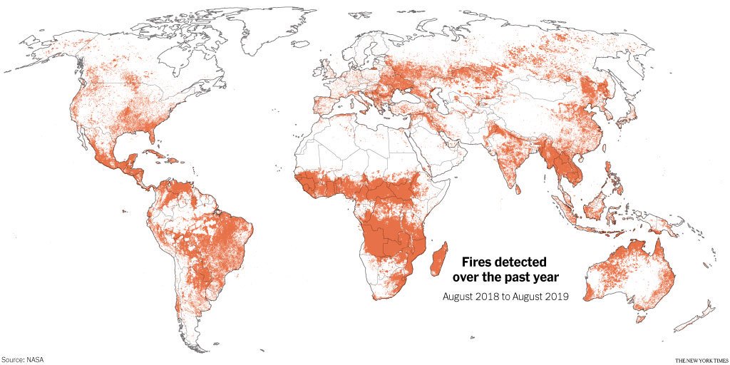 Hoří pralesy v Brazílii a Bolívii, Mexiku, Austrálii i Indonésii, savany v Angole a Kongu, také lesy na Sibiři i mnohde v Evropě. Jako by hořelo naráz všude, a pohled na stránky Global Forest Watch to potvrzuje: až na pár výjimek hoří všude tam, kde ještě má co hořet. A naopak nehoří tam, kde neroste nic ke spálení. Těžko se ubránit pocitům deprese, bezmoci, vzteku, u každého podle jeho nátury.